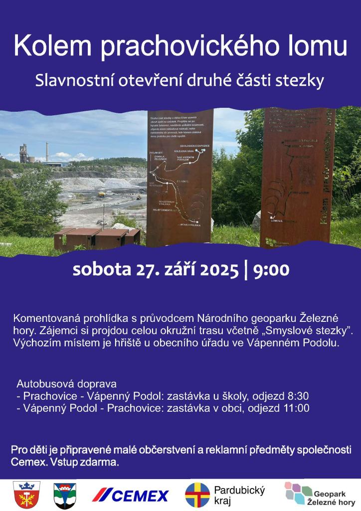 Pozvánka na akci slavnostní otevření druhé části stezky Kolem prachovického lomu – 27.9., 9:00